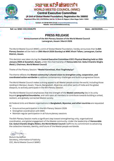 Announcement of the 6th Plenary Session of the World Meetei Council
